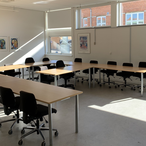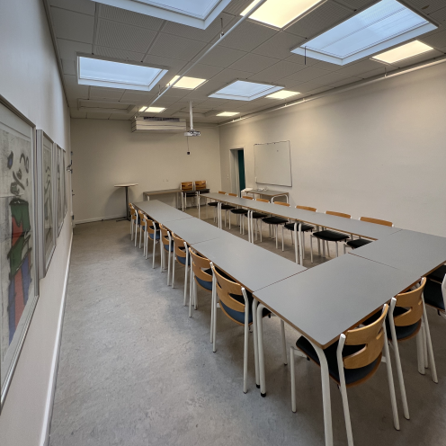 Billeder af mødelokaler på Hovedbiblioteket i Viborg Mødelokale M1, set fra dør Mødelokale M1, set fra bagerst i lokalet Lokale M2 fra vindue Lokale M2 fra front Lokale M3 set fra dør, mod tavle Lokale M3, set fra tavle til bagerst i lokalet Lokale Salen, set fra bagerst i lokalet Lokale Salen, set fra front