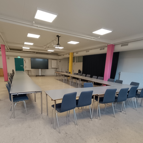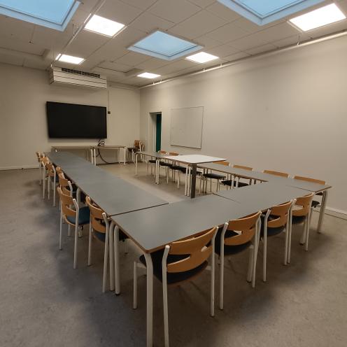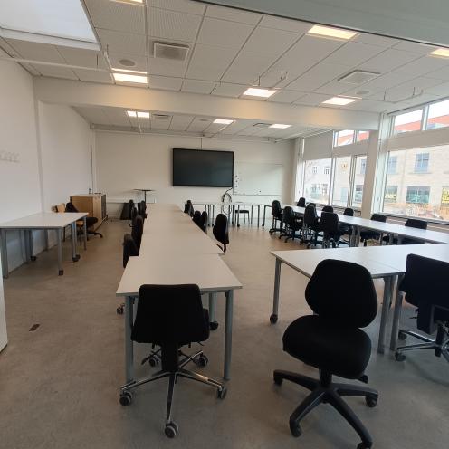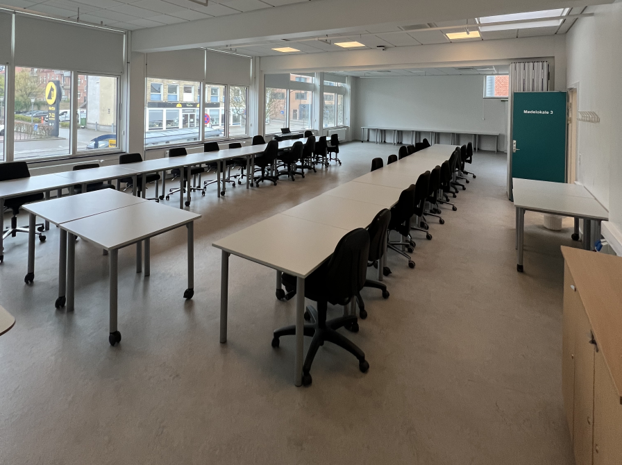 Billeder af mødelokaler på Hovedbiblioteket i Viborg Mødelokale M1, set fra dør Mødelokale M1, set fra bagerst i lokalet Lokale M2 fra vindue Lokale M2 fra front Lokale M3, set fra tavle til bagerst i lokalet Lokale M3 set fra midten af lokalet, mod tavle Lokale Salen, set fra front Lokale Salen, set fra bagerst i lokalet.png