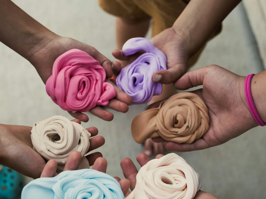 Hvert barn får udleveret ingredienserne til én portion slim. Hernæst vælger man frit mellem forskellige farver, glimmer, dufte osv.