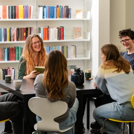 Vi læser forskellige bøger, artikler eller små uddrag, vi lytter til podcast eller ser korte klip, der kan åbne samtalen – og så undersøger vi emnet sammen.