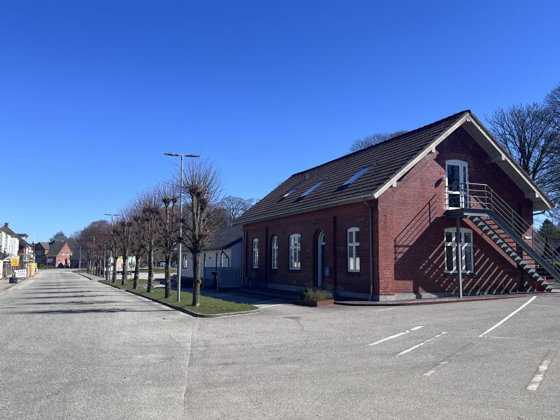 Hør historien om, hvorfor der kom en linjeføring og en station lige her, hvor Møldrup ligger i dag.